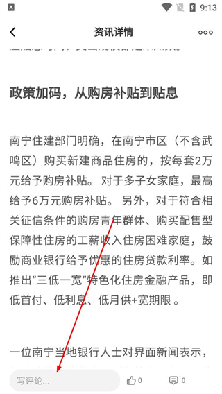 4、在頁面底部找到寫評論輸入框,點擊輸入框,準備輸入想要發布的評論內容,參與該資訊的互動討論。