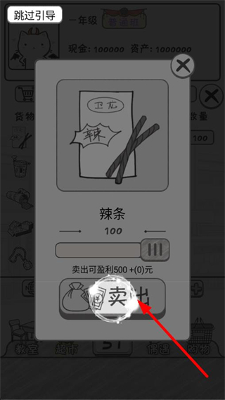 3、持有辣條后可在對應界面看到賣出盈利提示,點擊賣出按鈕就能完成交易,獲取相應的盈利,增加游戲內的現金資產。