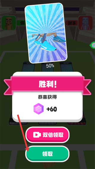 4、成功贏得對戰后,會彈出勝利界面,顯示獲得的獎勵,點擊領取按鈕,即可獲取對應獎勵,繼續游戲。