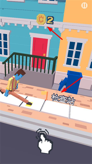 4、在檢查站等區域收集金幣,獲取游戲獎勵,同時順利通過檢查站,推進長腿漫步的劇情發展。