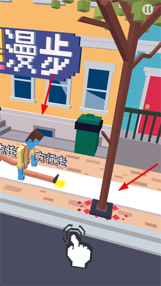 2、在街道行走時避開障礙物,如樹坑等,避免角色摔倒,保持行走的連續性,推進游戲進程。