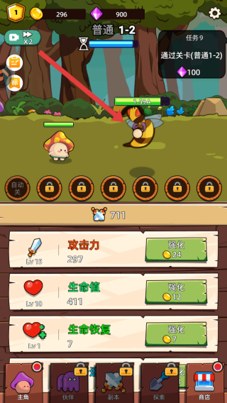 3、游戲有不同關卡,比如需要操控角色攻擊,角色會自動攻擊,打敗后可獲得獎勵,不斷挑戰新關卡推進冒險進程。