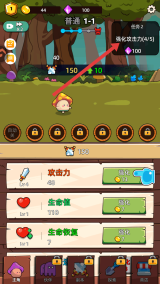 1、進入游戲后,能看到任務提示,像強化攻擊力這類任務,完成可獲取獎勵,助力角色更好攻擊敵人,開啟冒險第一步。