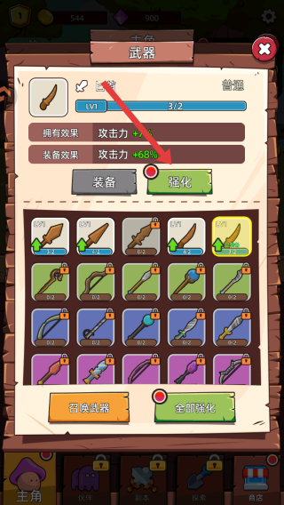 4、武器界面,能看到各種武器,可對武器進行強化,提升攻擊力等屬性,讓角色戰斗中更有優勢。