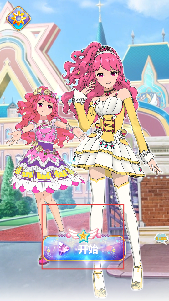 1、玩家下載游戲之后然后點擊進入,在游戲主界面點擊帶有星星裝飾的開始按鈕,進入魔法芭比換裝的游戲流程。