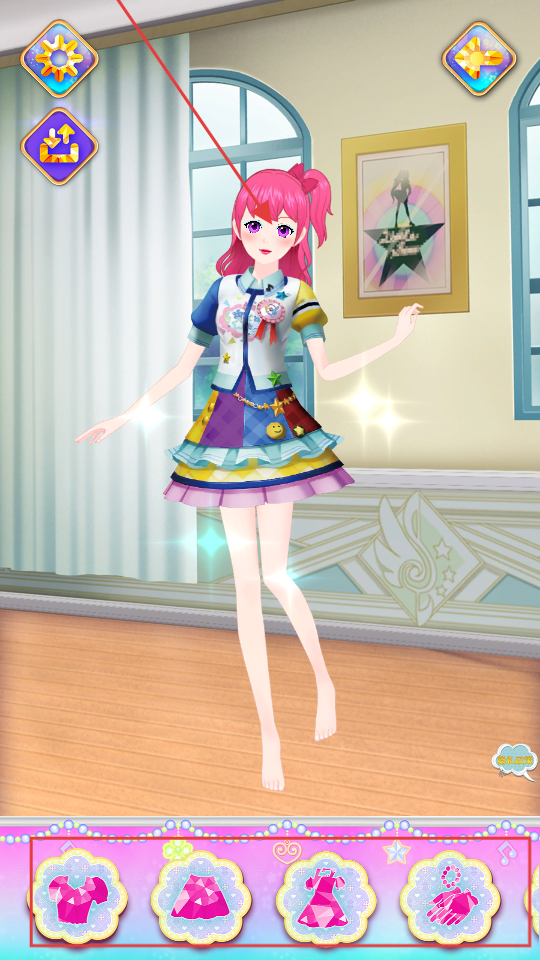 4、完成護理后進入換裝環節點擊屏幕下方的各類服裝圖標,為芭比挑選并搭配不同風格的服飾,打造出個性十足的魔法芭比造型。