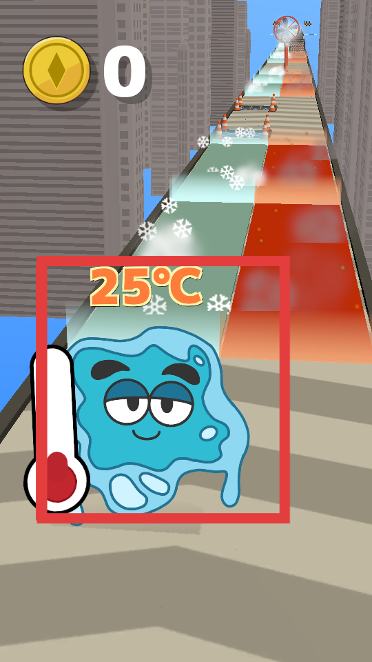 4、操控角色順利通過跑道上的各種溫度區域和障礙物向終點沖刺,成功抵達終點則完成當前關卡挑戰,之后可以嘗試挑戰更高難度的關。