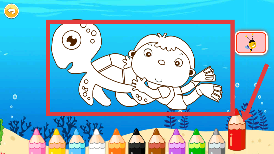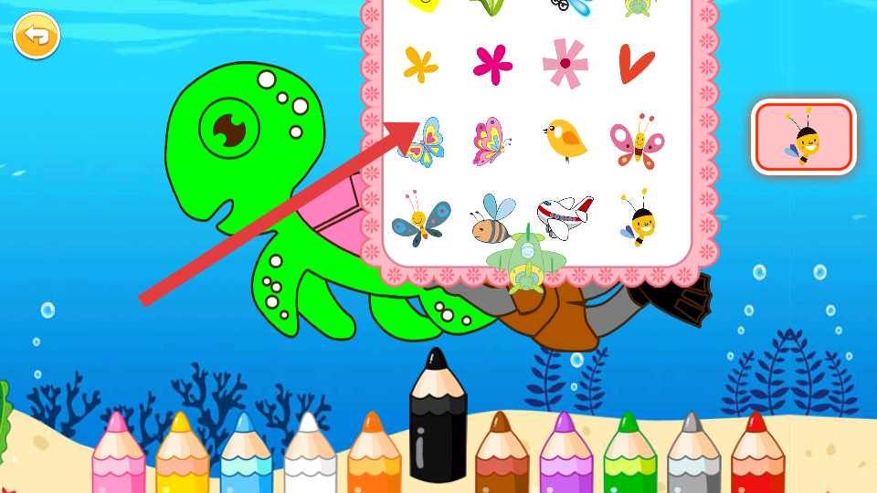 3、玩家可以在選定的主題場景中挑選想要涂色的圖案,比如海洋館主題里的海龜圖案。