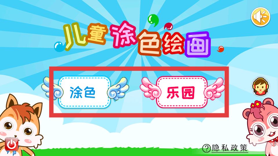 1、在游戲主界面點擊涂色或樂園按鈕,開啟兒童涂色繪畫之旅,涂色模式專注于為圖案填色,樂園模式有更多互動內容。