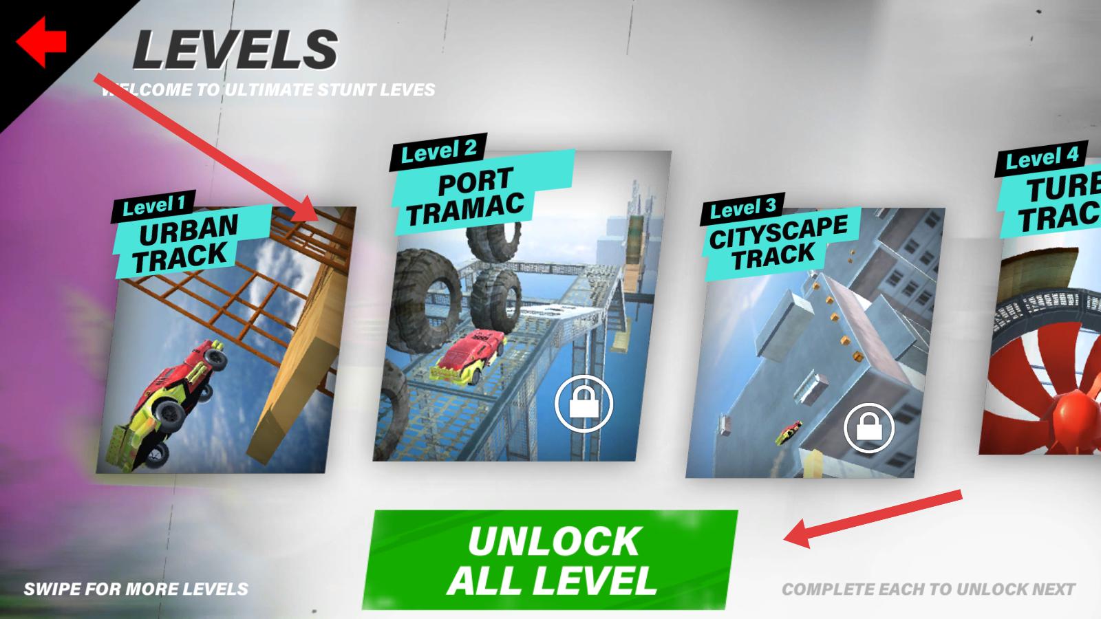 1、進入游戲,選擇關卡,從初始關卡開始,開啟特技賽車挑戰,體驗不同賽道的刺激。
