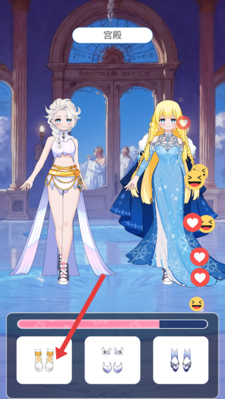 2、接著能挑選不同的鞋子等服飾,搭配到角色身上,讓角色的整體裝扮更符合喜好,同時會獲得愛心等互動反饋。