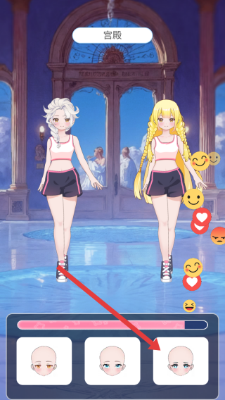 1、進入游戲宮殿場景中,可選擇不同的頭部形象,為角色更換合適的頭部外觀,打造獨特造型。