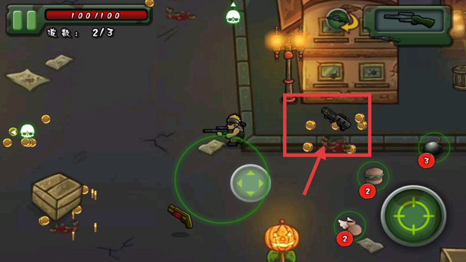 3、戰斗中消滅僵尸會掉落金幣和武器,要及時拾取金幣積累財富,更換更強武器提升戰斗力,更高效地應對后續出現的僵尸。