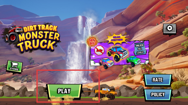 1、玩家下載游戲之后然后點擊在游戲主界面,點擊PLAY按鈕,即可進入怪物卡車駕駛游戲,開啟駕駛挑戰。