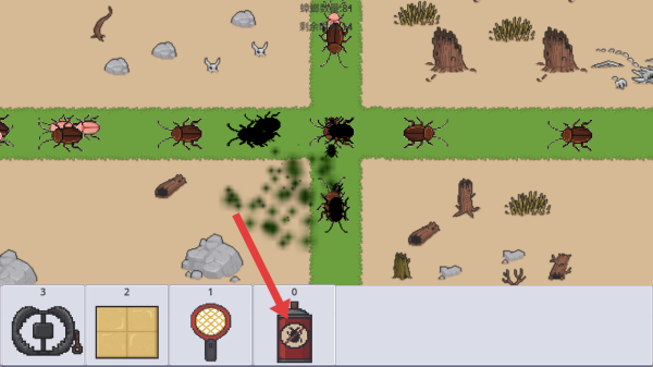 2、道具使用技巧:噴霧劑適合處理密集蟲群,黏膠可阻斷關鍵通道。冷卻時間長的強力道具要留待boss戰使用,普通關卡優先消耗基礎工具。