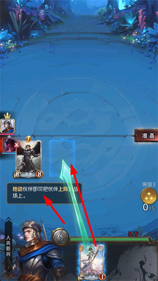 3、準備界面,拖動已獲得的伙伴,將其布置到戰場上,完成伙伴的上陣操作,為接下來的戰斗做準備。