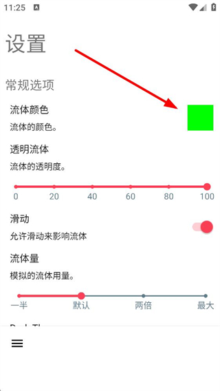 2、設置頁面的常規選項中,可調整流體顏色、透明度等參數,點擊流體顏色選項,即可打開顏色選擇面板,挑選喜歡的流體顏色。