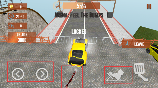 4、利用屏幕左下角的左右方向按鈕控制車輛轉向,屏幕右側的剎車按鈕控制車輛減速或停車,以此來應對賽道上的各種狀況。