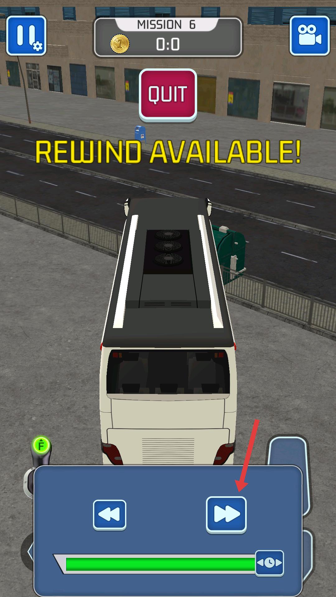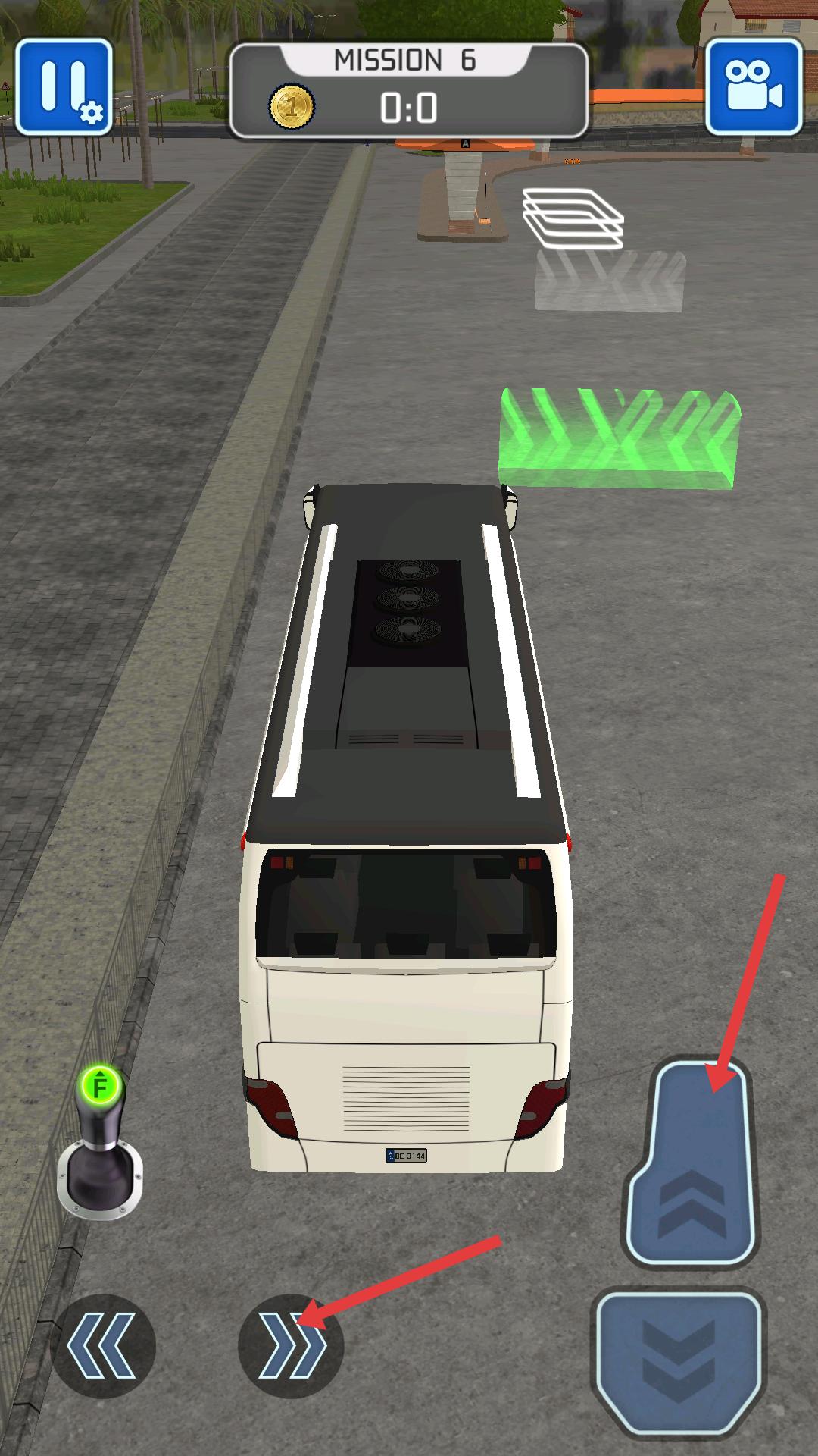 2、在駕駛大巴時,通過右側油門踏板控制前進,左側方向鍵調整方向,精準操作讓大巴駛向綠色目標區域,完成停車任務。