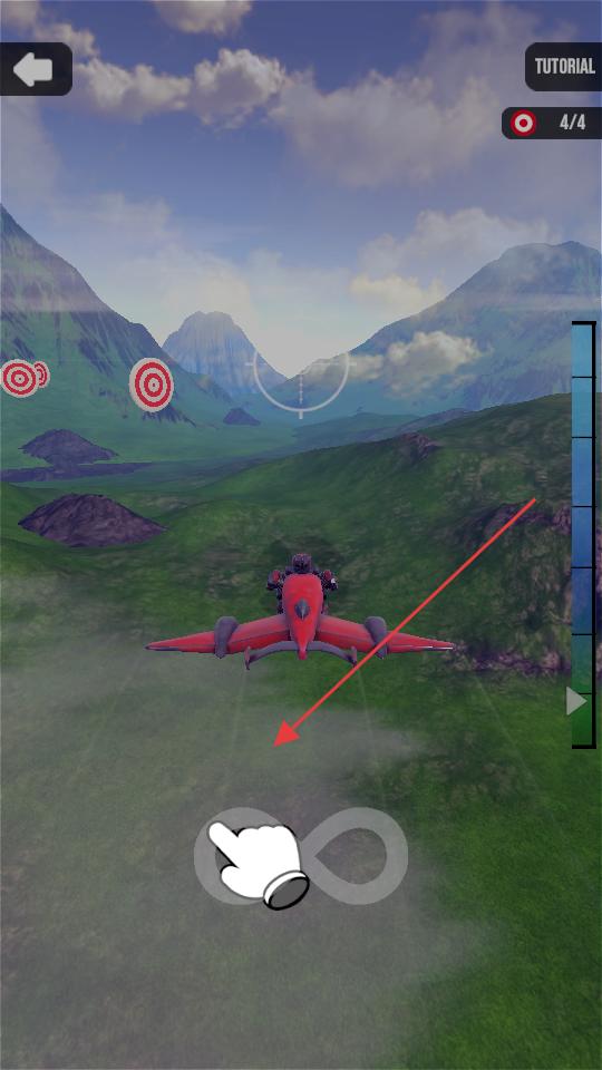 2、在飛行過程中根據提示,點擊屏幕上的操作區域,控制飛機的飛行方向,躲避障礙,朝著目標方向前進。