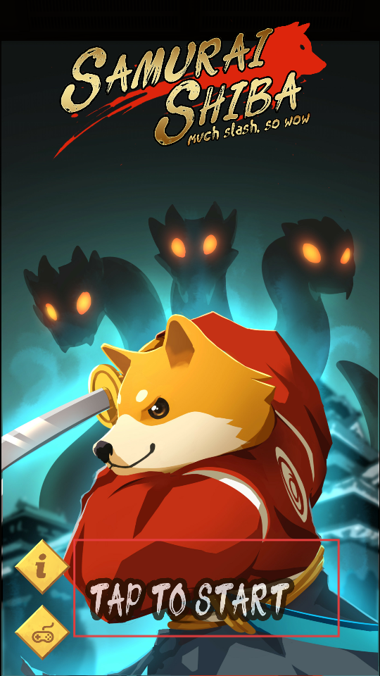 1、點擊TAP TO START進入游戲,能看到可愛的武士柴犬形象,開啟武士冒險之旅,準備迎接戰斗挑戰。