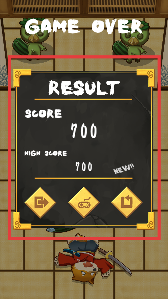4、若戰斗失敗,會顯示GAME OVER界面,能看到本次得分和最高得分,可選擇相關按鈕重新開始或進行其他操作。