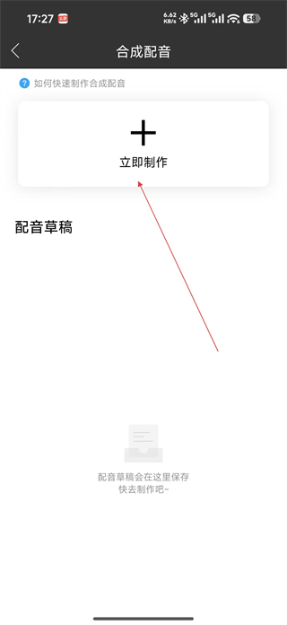 3、進入合成配音頁面點擊立即制作按鈕,進入配音編輯界面,可準備輸入需要配音的文字內容。