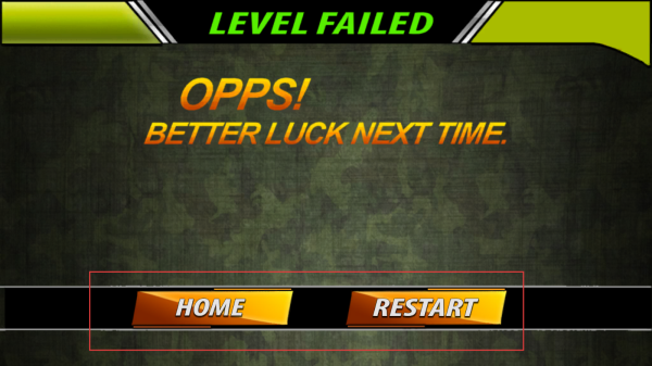 4、如果關卡挑戰失敗,會出現LEVEL FAILED提示界面,點擊RESTART可以重新開始當前關卡,點擊HOME則返回游戲主界面。