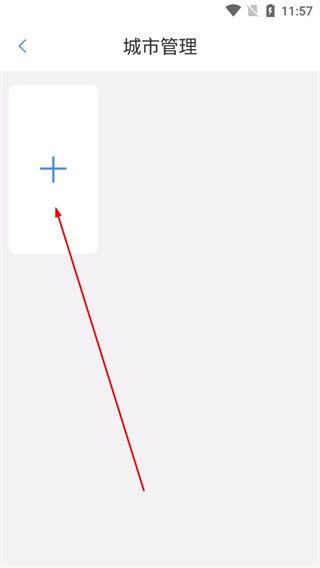 3、登錄成功后找到城市管理入口,進入城市管理頁面,點擊帶有加號的區域,跳轉至搜索城市界面,準備選擇或搜索目標城市。