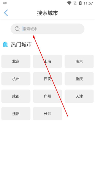 4、在搜索城市界面可直接選擇熱門城市列表中的選項,也可在搜索框輸入城市名稱,找到目標城市后點擊即可完成城市添加。