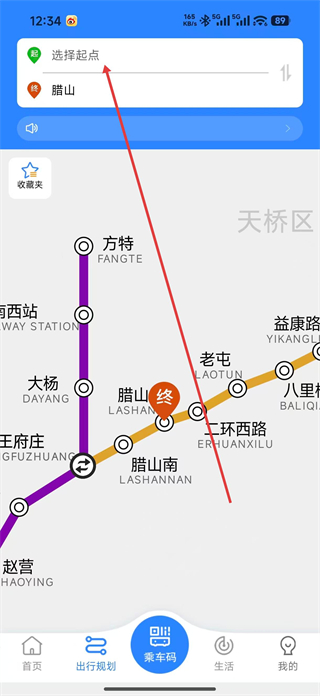 4、在路線規劃頁面選擇起點位置,確認終點為臘山,即可查看對應的地鐵出行路線,獲取詳細的乘車指引信息。