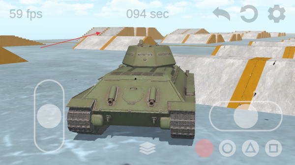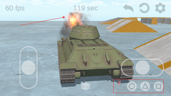 2、進入游戲后,通過屏幕左側和右側的虛擬方向按鈕控制坦克的前進、后退和轉向,在復雜的地形中移動。