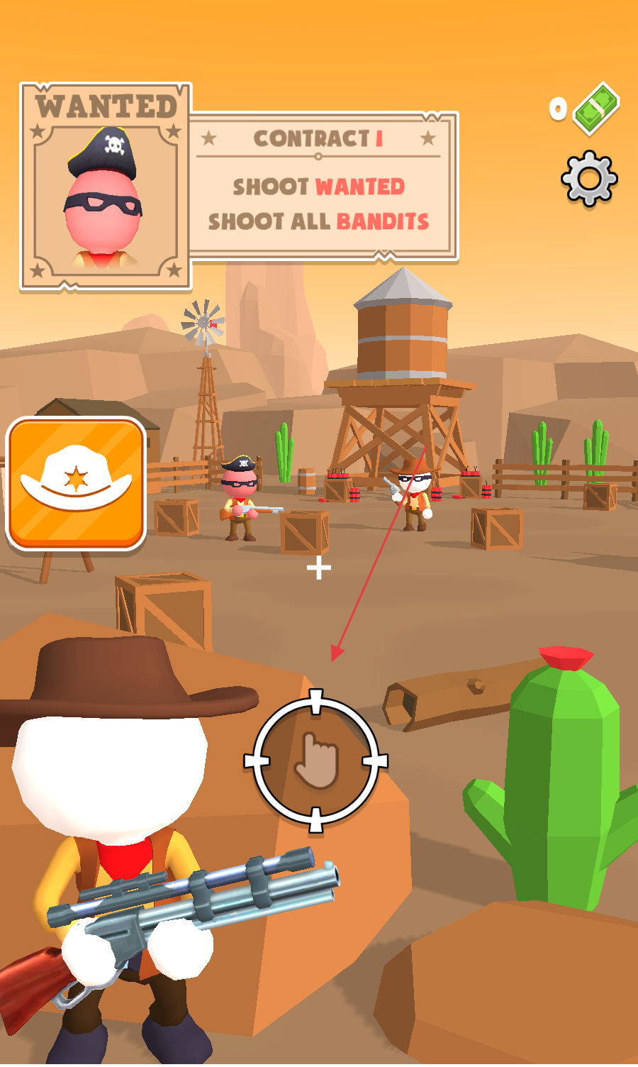 2、通過滑動屏幕或使用瞄準鏡,將準星對準目標如通緝犯、匪徒等,點擊射擊按鈕,發射子彈,精準命中目標。