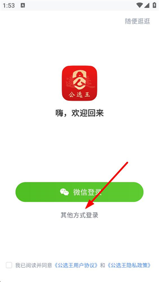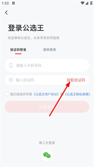 3、登錄頁面可選擇微信登錄,也能通過其他方式登錄,勾選用戶協議后完成登錄,即可同步學習數據使用個性化備考服務。