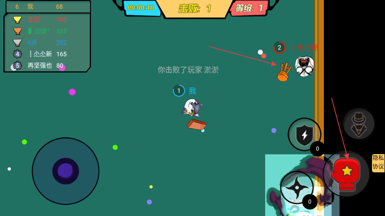 2、通過屏幕左下角的虛擬搖桿控制狗子角色的移動,利用屏幕右側的攻擊按鈕,對其他玩家角色發起攻擊。