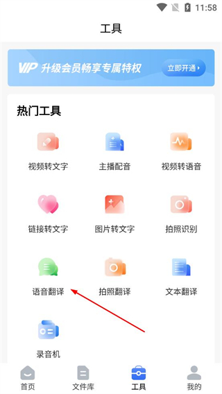 3、登錄完成返回主界面切換到工具頁面,在熱門工具區域找到語音翻譯選項,點擊該選項進入語音翻譯的功能操作界面。