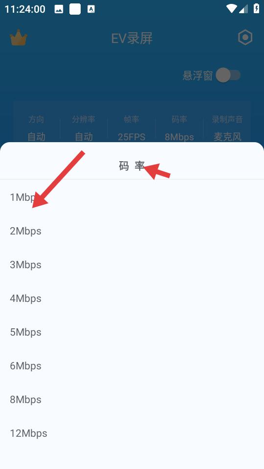 1、碼率設置列表從上到下羅列1Mbps、2Mbps直至12Mbps多檔選項,覆蓋低畫質省空間到高畫質保清晰的需求。