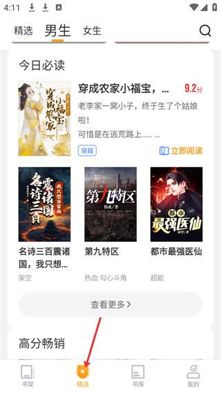 2、精選男生板塊有穿成農家小福寶、名詩三百震諸國、第九特區等小說,提供熱門小說推薦。