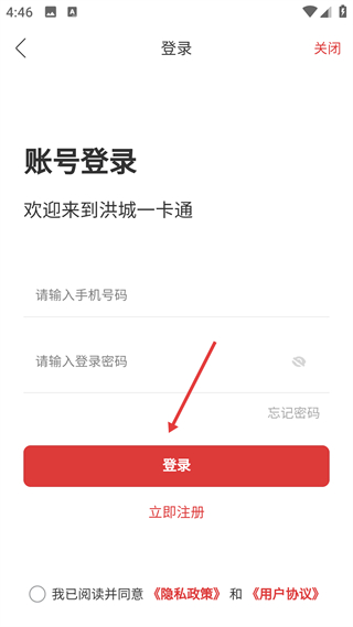 1、首先要下載洪城一卡通app,點擊進入并完成賬號注冊與登錄若首次使用,需按指引綁定個人信息、卡片等。