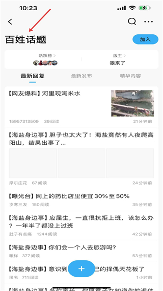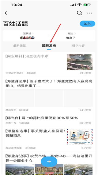 4、百姓話題最新發布界面展示本地最新動態,涵蓋多領域內容,用戶可快速獲取信息,也能發布新話題。