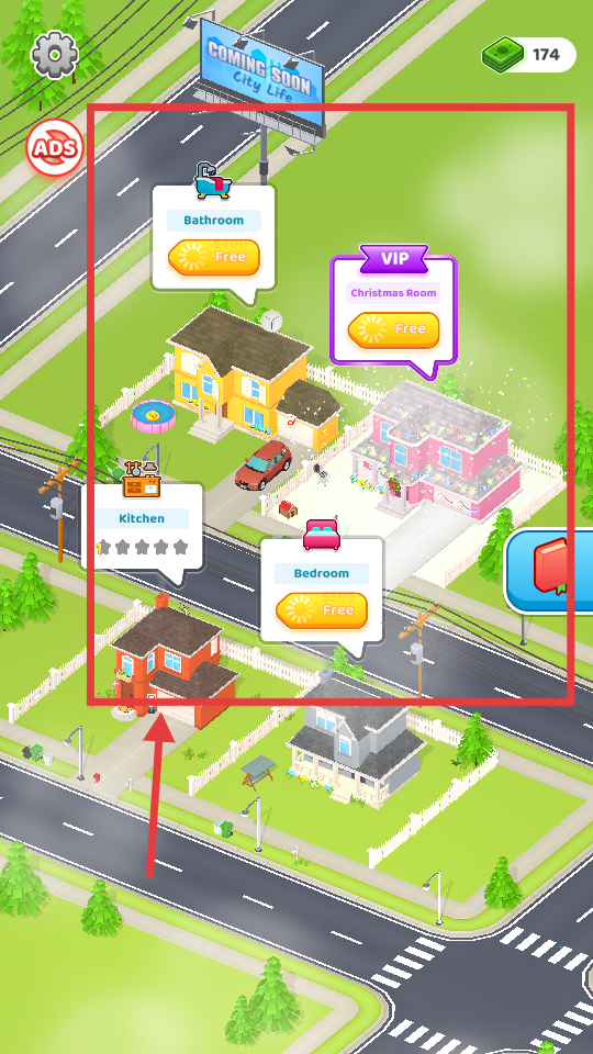 1、游戲初始有多個房間可選,像浴室、廚房、臥室等,還有VIP專屬的圣誕房間,可根據喜好選擇免費房間開始整理。