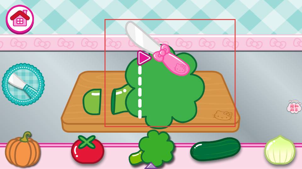 3、在廚房操作界面,選擇合適的刀,點擊并滑動屏幕來切割相應的食材,按照游戲要求完成食材處理,制作出符合目標的美食。