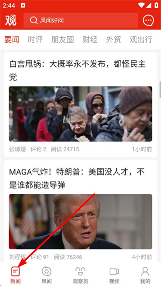 1、進入新聞板塊,可瀏覽要聞、時評等各類新聞,查看新聞的評論數、閱讀量及發布時間,方便用戶獲取最新資訊。