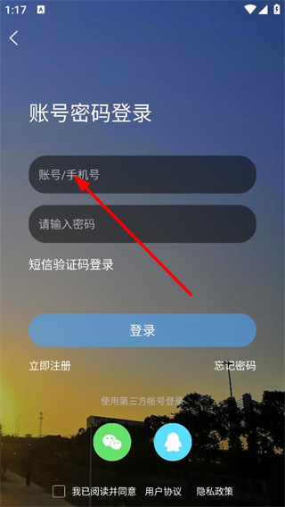3、賬號密碼登錄頁面可輸入賬號和密碼登錄,也可選擇短信驗證碼登錄,還能通過第三方賬號快捷登錄,勾選協議后完成操作。