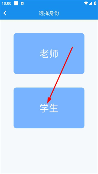 3、完成學校選擇等步驟后會進入選擇身份頁面,頁面提供老師和學生兩種身份選項,根據自身實際身份點擊對應選項,即可進入對應身份的后續操作環節。