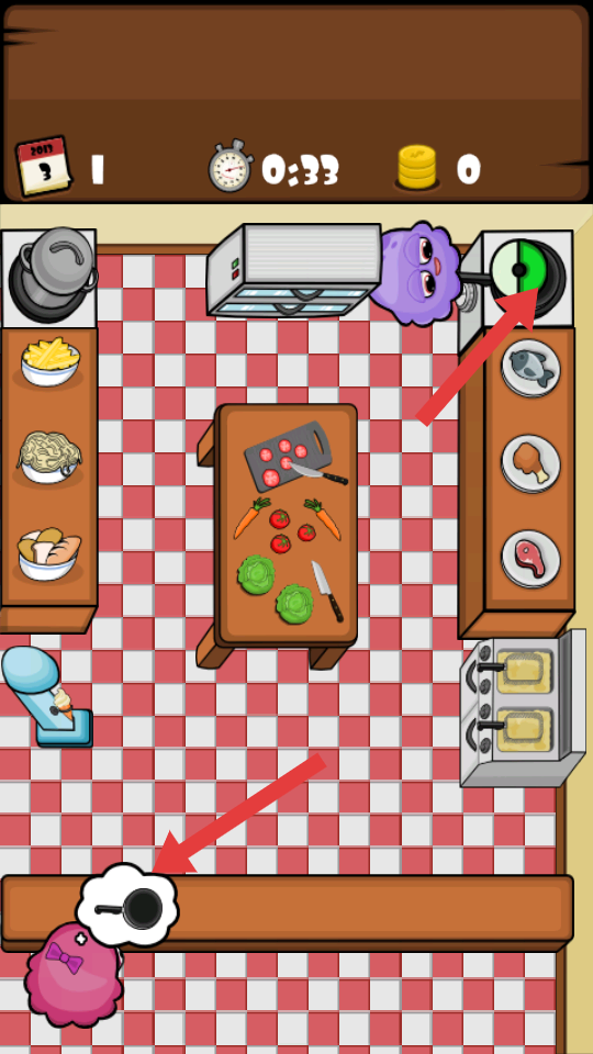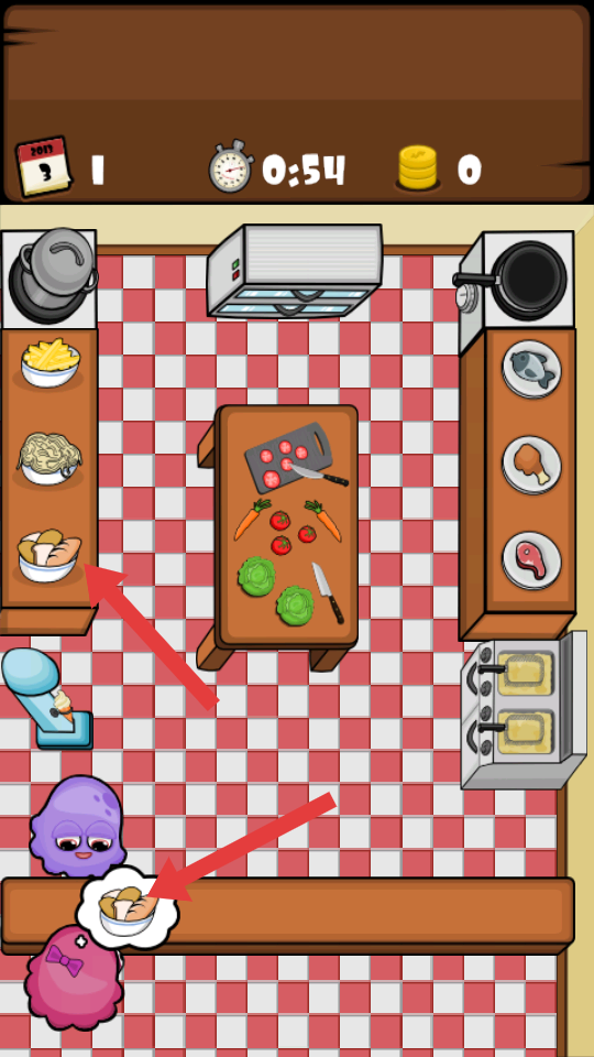1、進入游戲,根據顧客需求,從食材區選取對應的食材,為制作美食準備好原料。
