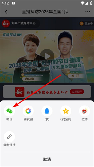 如e如皋app怎么分享直播