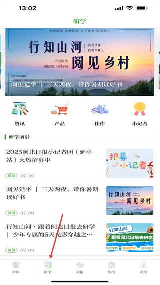 2、研學板塊推出行知山河閱見鄉村活動,發布閩北日報小記者團招募、暑期讀好書等內容,助力研學與閱讀。