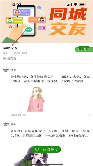 4、同城交友板塊用戶發布交友信息,如性格開朗、身材好的女性交友動態,為市民提供同城交友平臺。