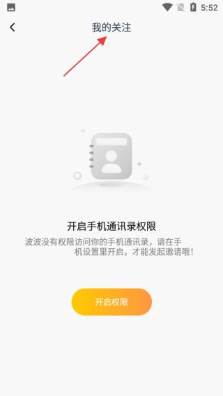 1、點我的關注,下方提示應用無權訪問手機通訊錄,需在設置開啟權限以發起邀請。